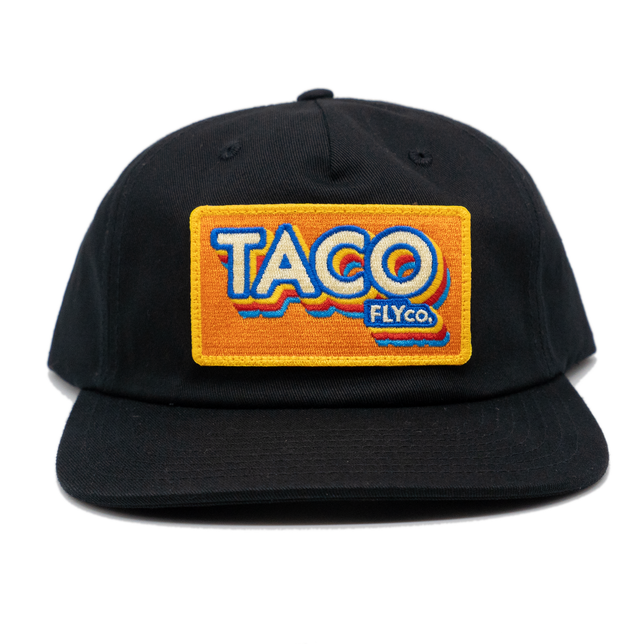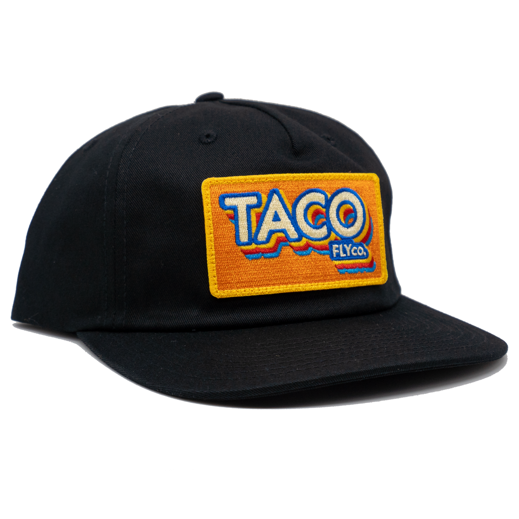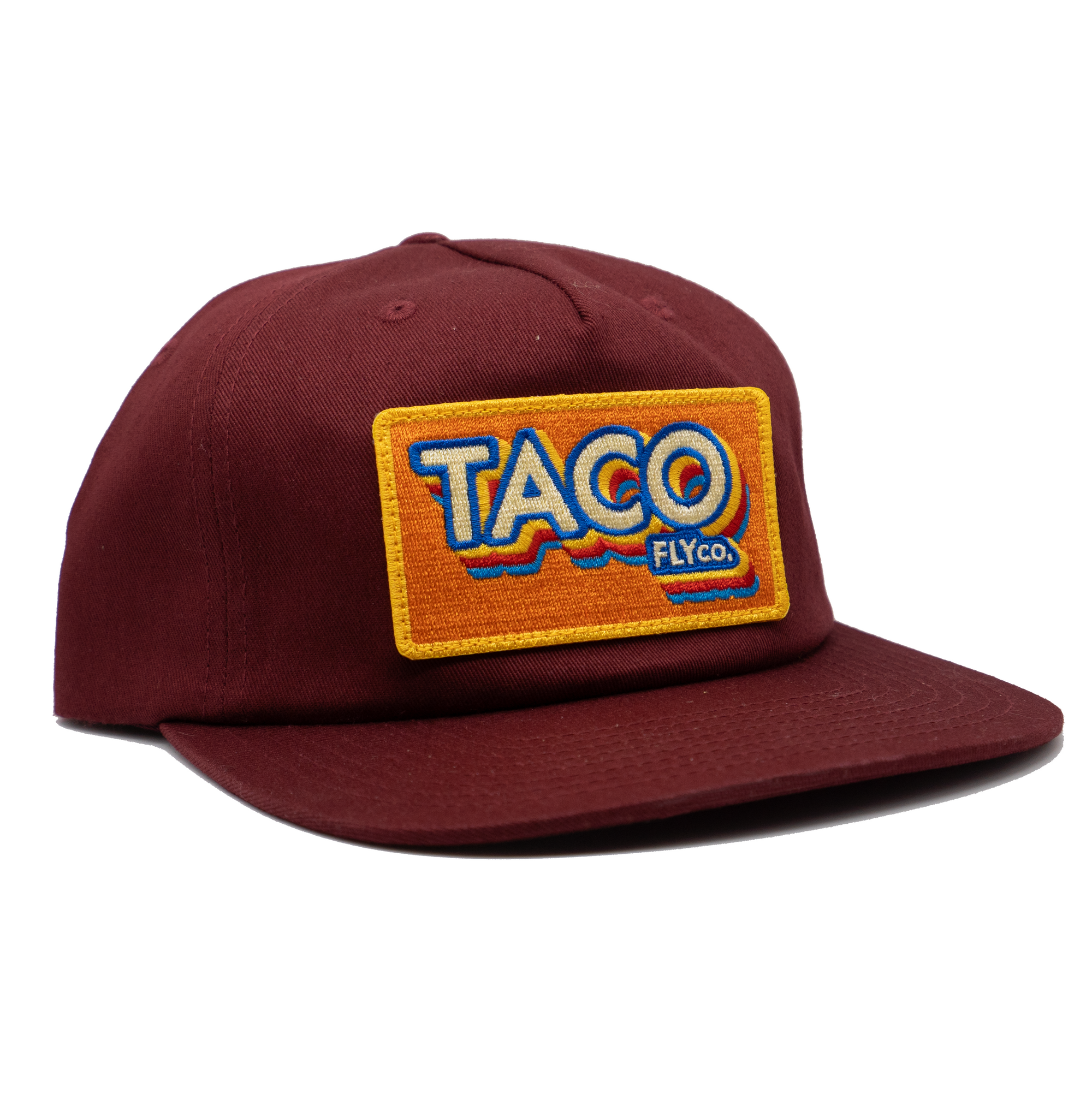 A tasty Cotton, Unstructured, Pinch Front 5 Panel, Flat Bill, with a Premium Leather Strap with Brass Clasp.