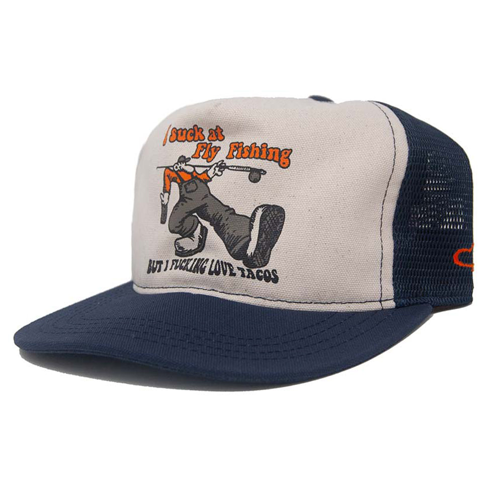 The "I Suck at Fly Fishing Hat" is back because you asked for it and Ampal still loves us enough to collab. We love them so mucho too.